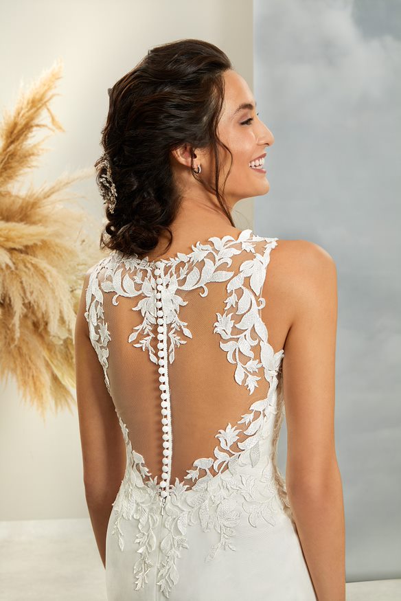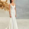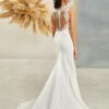 Cette robe façon sirène dans une jupe en crêpe et un petit haut en dentelle avec un dos tatou et de fine bretelle sera simple