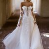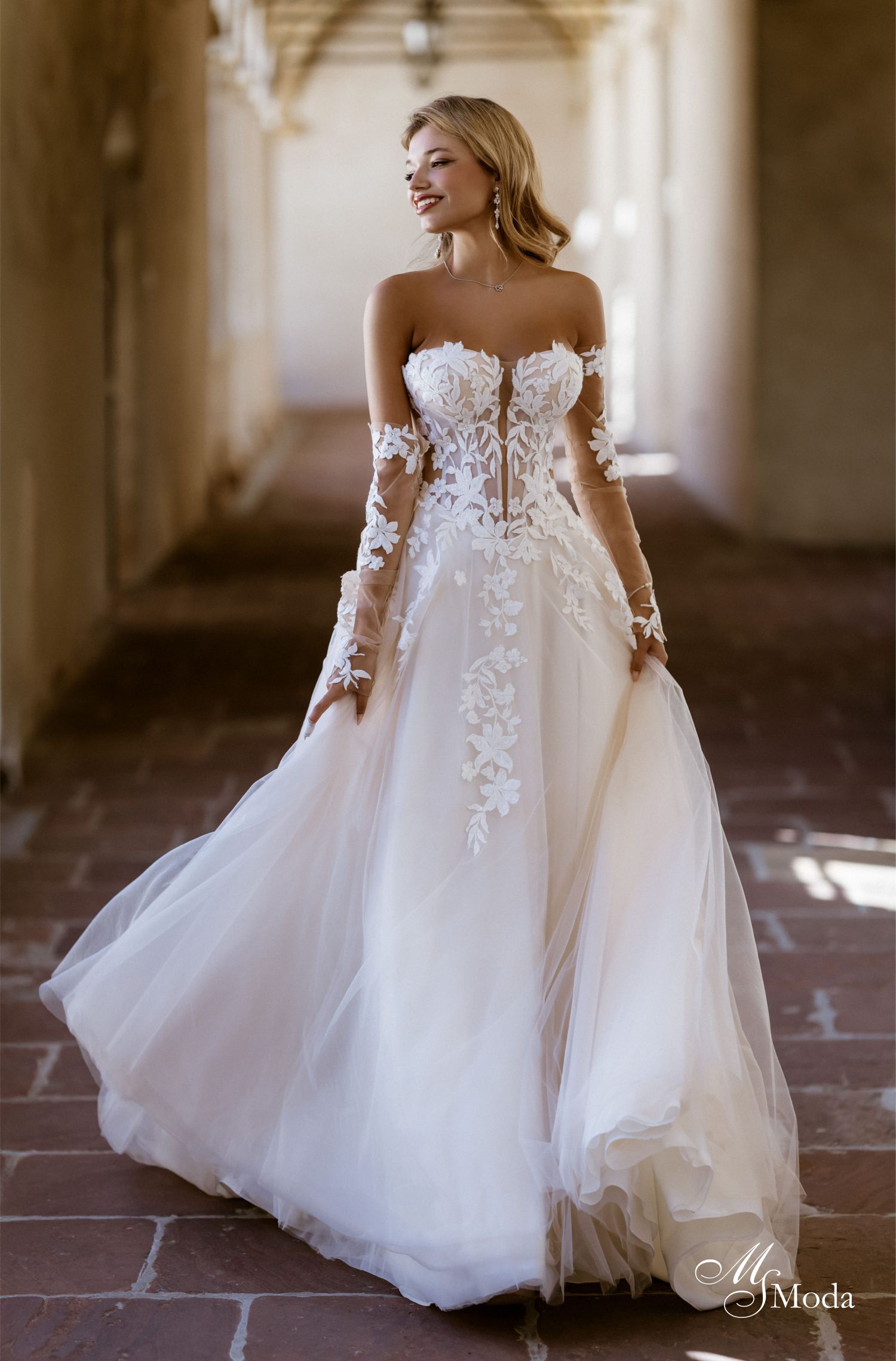 La robe de mariée Alexie de la collection MS Moda incarne la féminité absolue et le raffinement à l’état pur.
