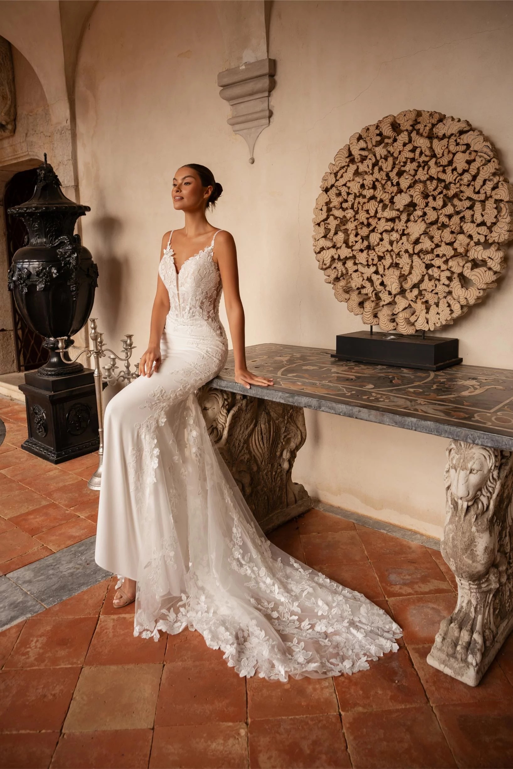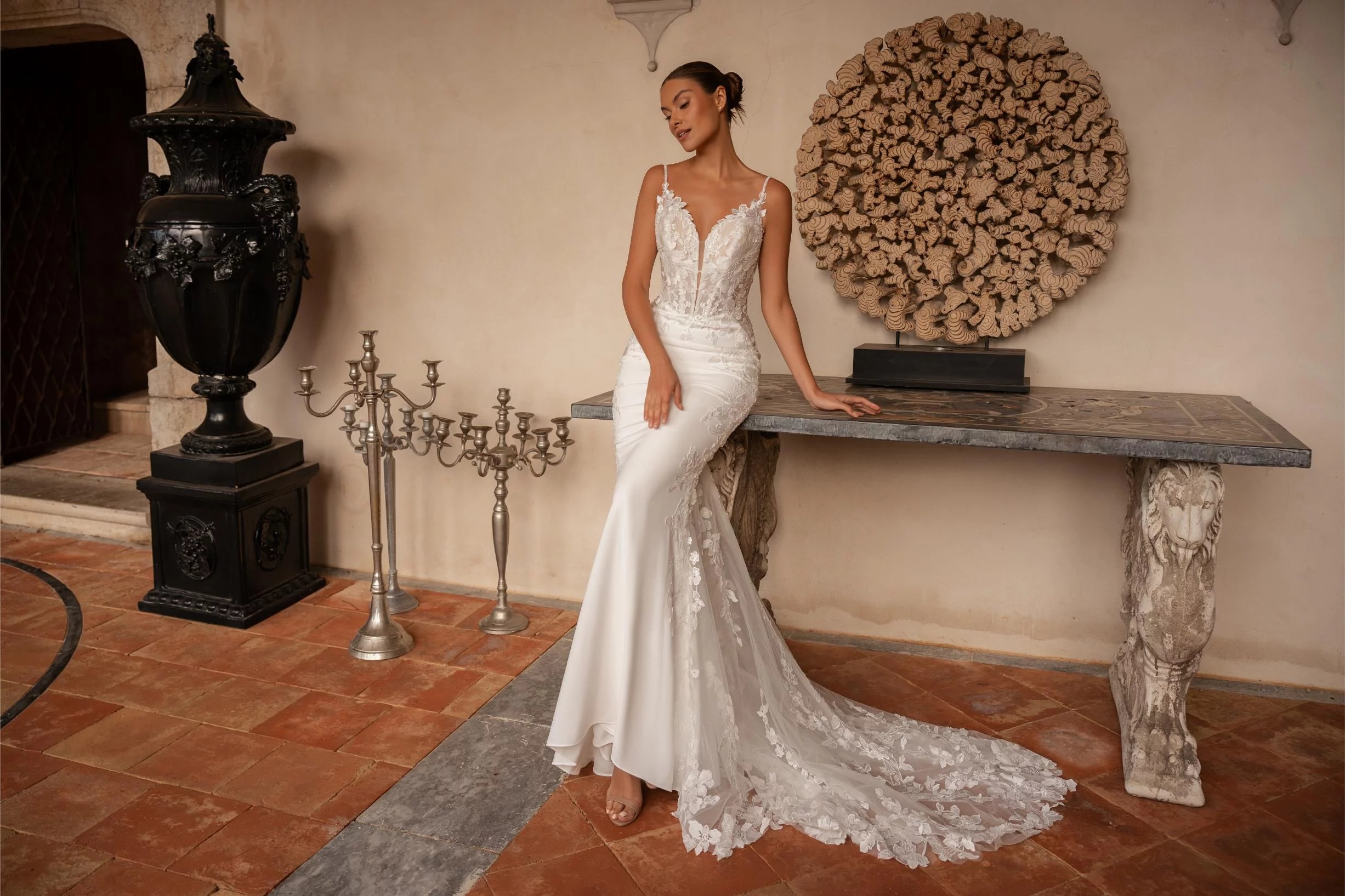 Un modèle pensé pour la mariée moderne ,sur d elle ,qui recherche l équilibre entre glamour et élégance intemporelle.