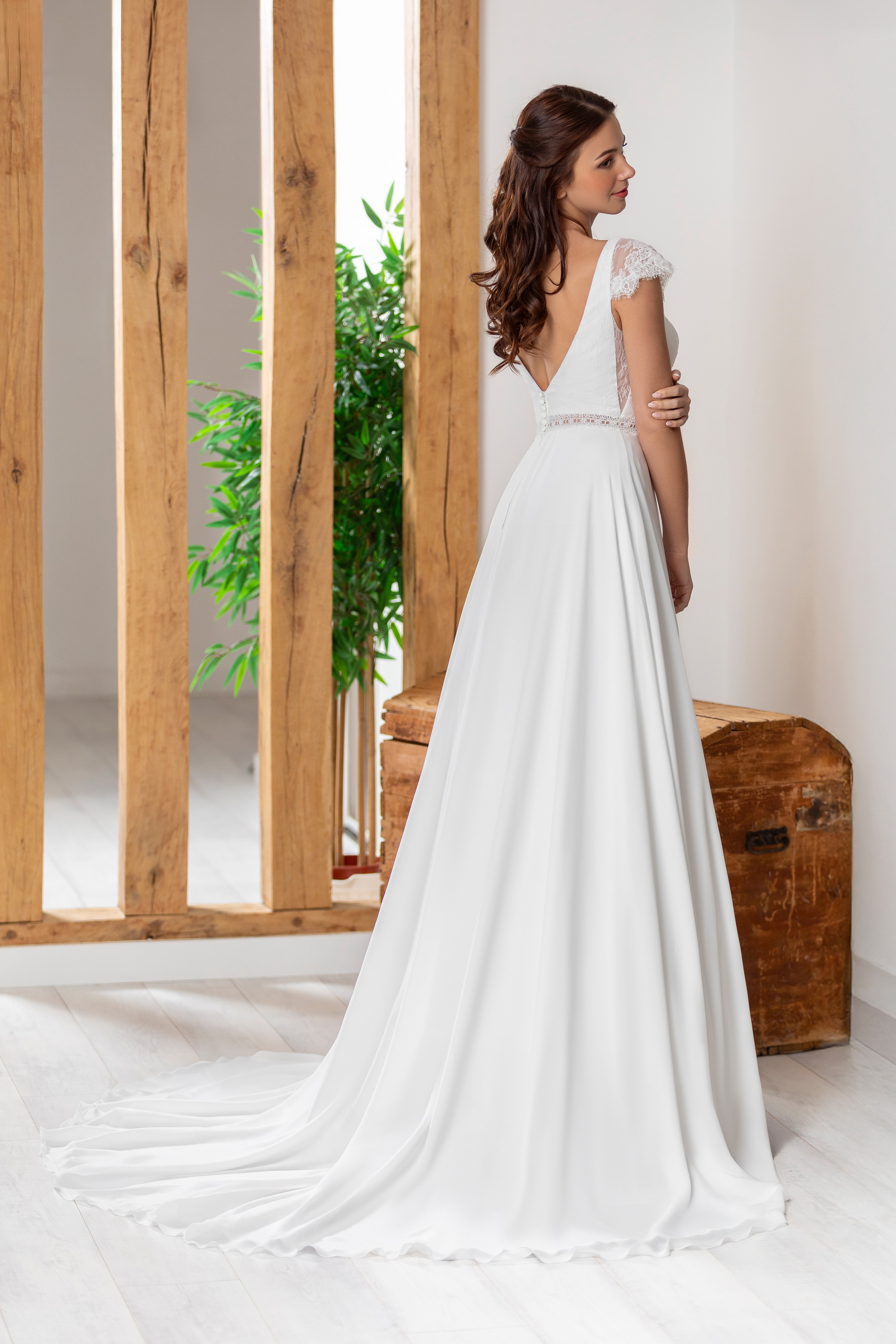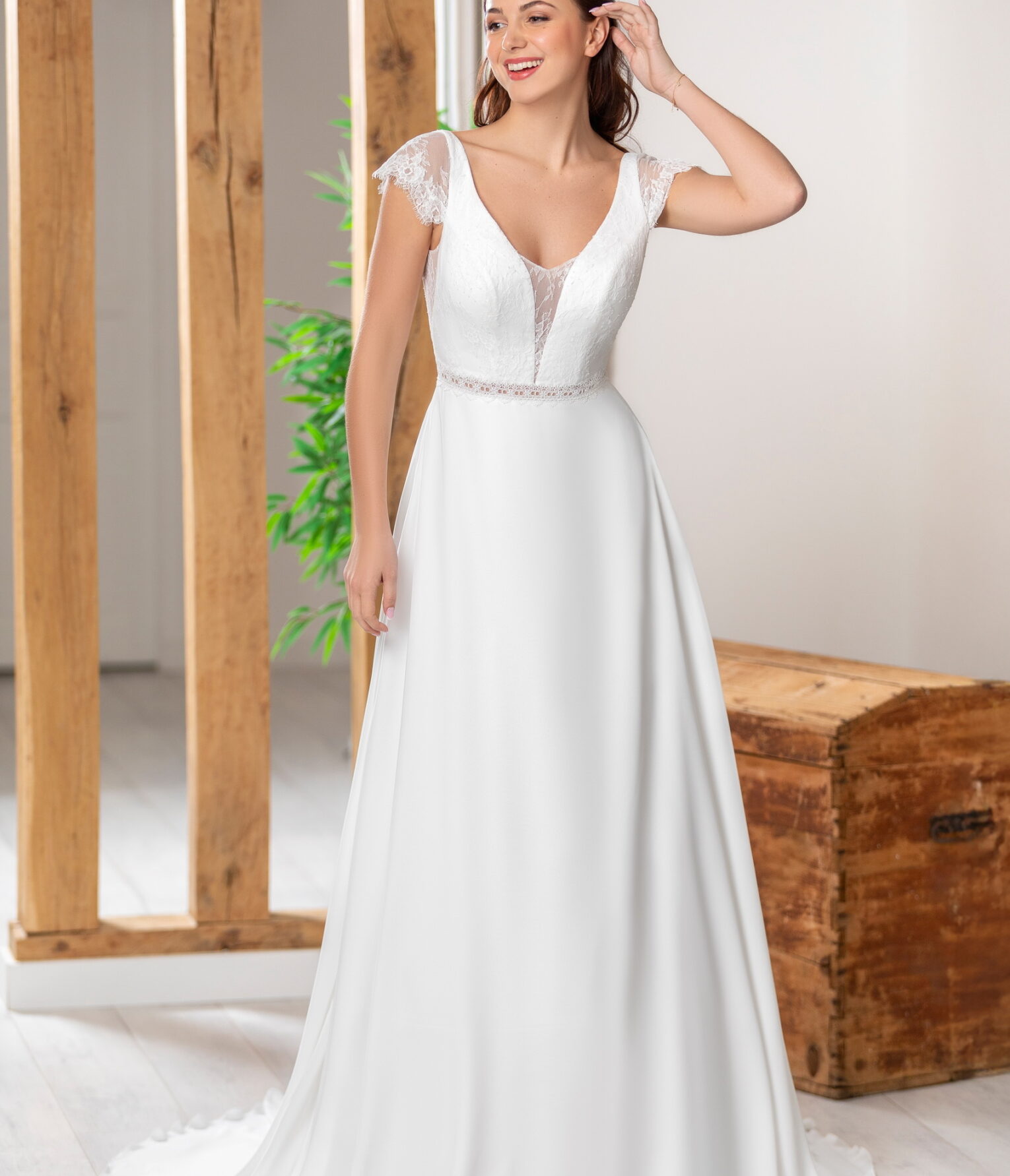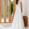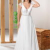 Découvrez l’élégance bohème de notre nouvelle robe en crêpe, parfaite pour la mariée moderne. Son décolleté plongeant et sa délicate ceinture en dentelle mettent en valeur la silhouette avec subtilité. Les petites manchettes très courtes et le dos plongeant ajoutent une touche de sensualité. Une robe délicate et fluide, idéale pour toutes les futures mariées des Bouches-du-Rhône, de la région PACA, et des environs de Vitrolles, Marignane, Marseille, et bien plus encore.