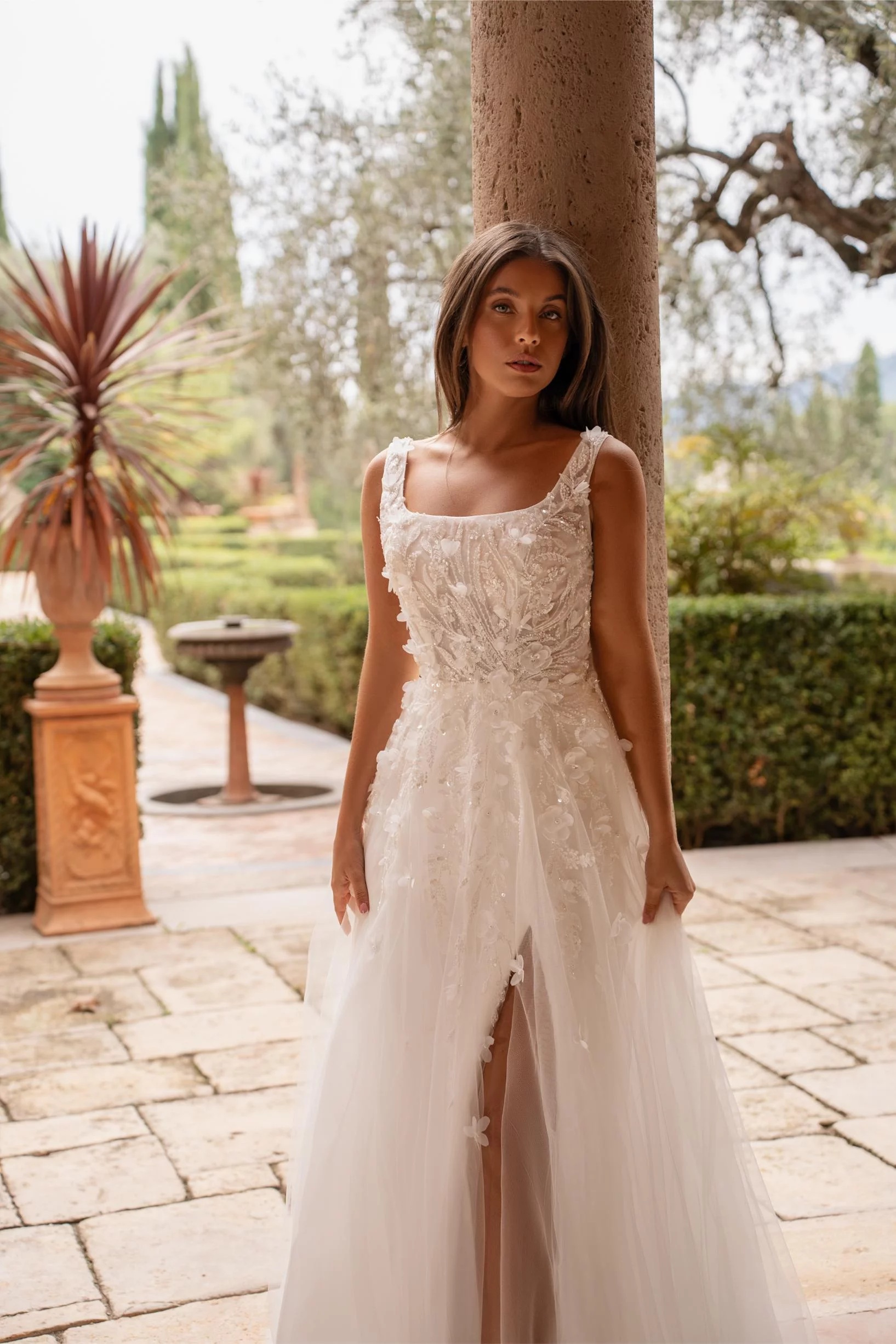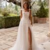Osez la sensualité et l élégance avec cette somptueuse robe de mariée à l encolure carrée, délicatement soutenue par de fine bretelles.