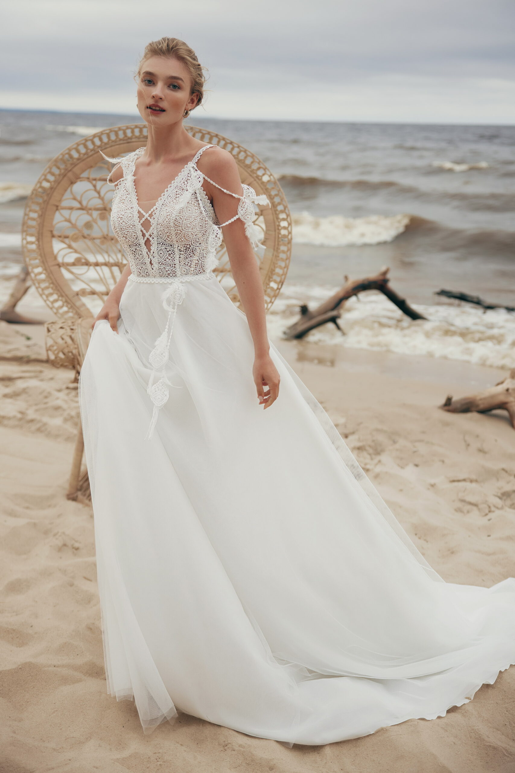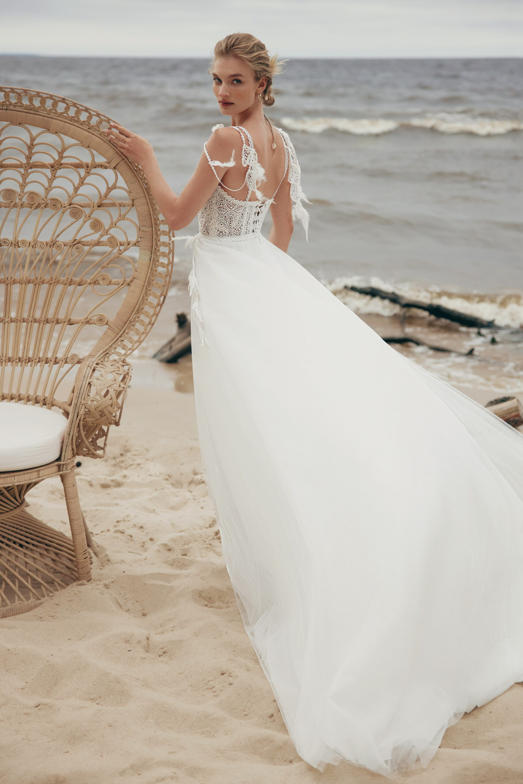 Cette robe est idéale pour un mariage au bord de la plage, un mariage bohème et naturel, qui allie simplicité et élégance.