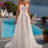 Découvrez cette robe de mariée princesse au bustier en dentelle raffinée ,qui se prolonge sur le bas de la jupe .