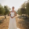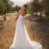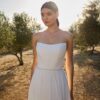 Laissez vous envouter par cette somptueuse robe de mariée bustier en mousseline, ou la jupe se prolonge avec grâce dans de la mousseline légère.