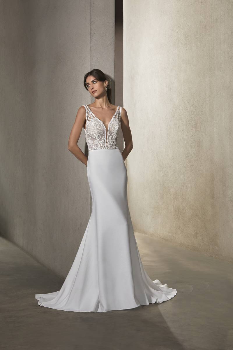 Un modèle de robes de mariées intemporelle et éternelle. Pour les mariées qui aspirent à la beauté classique nos robes intemporelles capturent l’essence