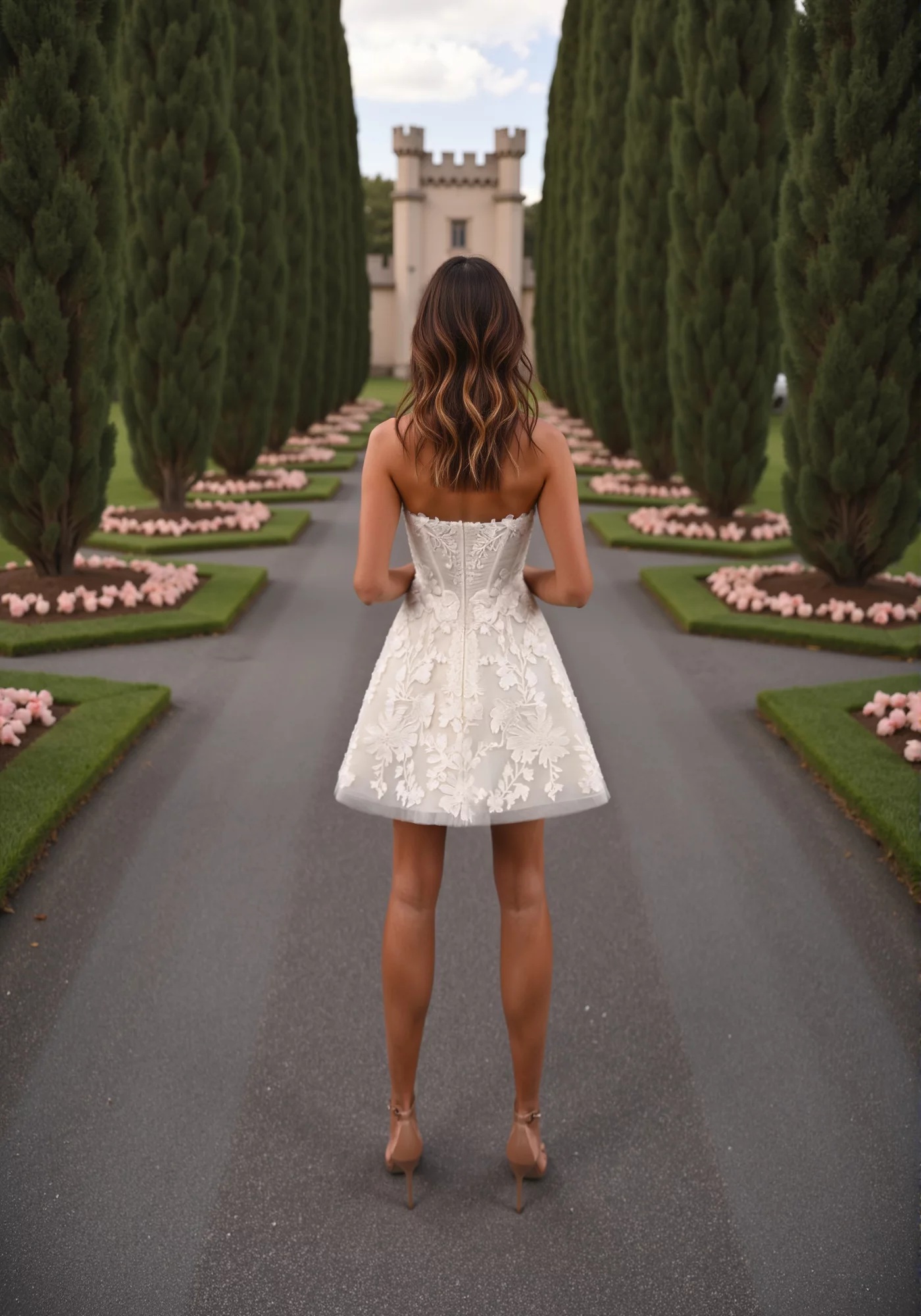 Découvrez une robe de mariée unique et audacieuse, pensée pour les mariée qui veulent séduire tout en élégance. Son bustier effet guêpière en dentelle raffinée sublime la silhouette avec sensualité et délicatesse. La jupe courte patineuse en dentelle apporte légèreté, modernité et met en valeur de belles jambes.