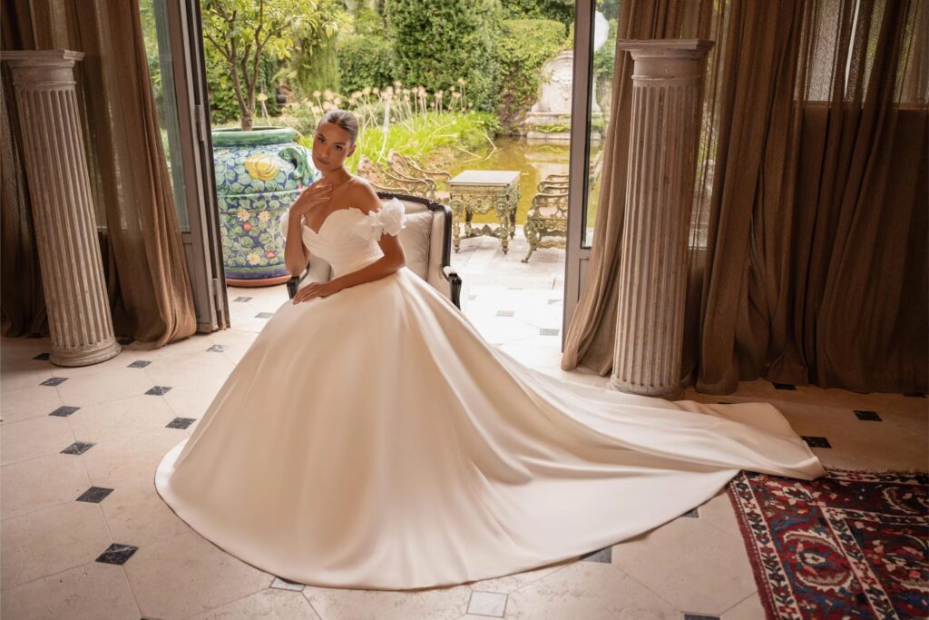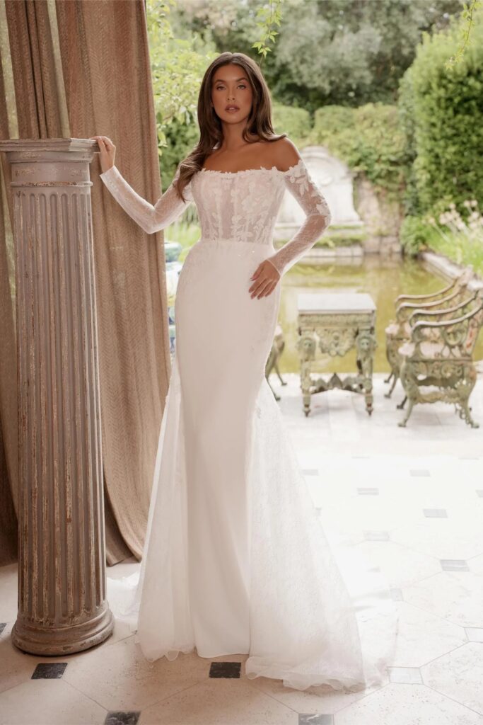 Un modèle pensé pour la mariée moderne ,sur d elle ,qui recherche l équilibre entre glamour et élégance intemporelle.